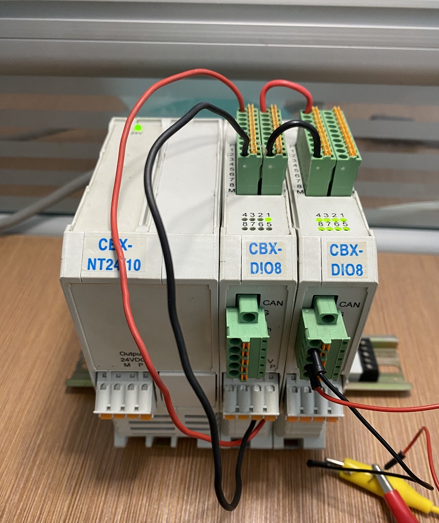 - 写入成功后,可以查看CAN-CBX-DIO8装置,1,2,3上的指示灯都亮起了。
