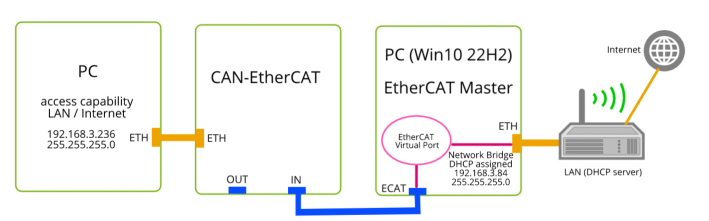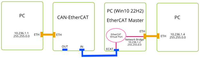 使用桥接方式连接 esd EtherCAT Virtual Port 与 Ethernet。