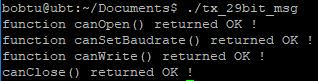 将程序编译连接gcc -o tx_29bit_msg tx_29bit_msg.c -lntcan,然后执行一下。